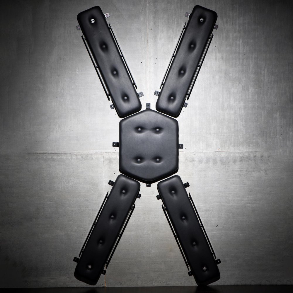 Optimize your kinky play with this wall-mounted St. Andrew's Cross! This plush, padded cross lays flat against the wall so you have more floor space! It's perfect for smaller rooms and gives you more square footage to place other kinky pieces in the room along with the cross. It's also great for rooms that have dual use such as a bedroom where you can hide a cross behind a curtain or dresser. The cross comes in 5 separate pieces and is shipped in a flat package discreetly to your address! Assemble it with the help of a drill and stud finder and place the 5 pieces exactly at the height that you prefer for easy and ergonomic scenes. The ultra plush pads are covered in PVC faux leather, are extra comfortable and easy to clean with a toy cleaner or isopropyl alcohol spray. Along the sides of each leg and arm pad are attachment points where you can attach wrist and ankle cuffs, rope, or other kink accessories! Get your submissive to stand upright for impact play whenever you like with this easy to install, easy to hide and compact St. Andrew's Cross!