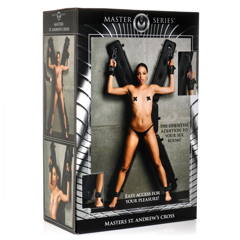 • Save on Floorspace!: This upright St. Andrew's Cross lays flat against the wall so you can save on floorspace and it is easily hidden behind a dresser or curtains when not in use.