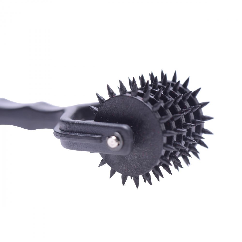 This modern take on a Wartenberg wheel features a row of 5 spikey pinwheels for your pin-pricking pleasure. The ergonomically-shaped handle allows for good grip in those hot and heavy moments when you want to deliver a subtle but sharp sensation. The smooth rolling motion will glide over the whole body, dipping easily into those most sensitive spots. Ideal for sensation play, this device pairs well with a blindfold to keep your partner guessing where they will feel that delightful sting next. Lightweight and travel-friendly, this pinwheel is a simple way to spice up any sexual experience.