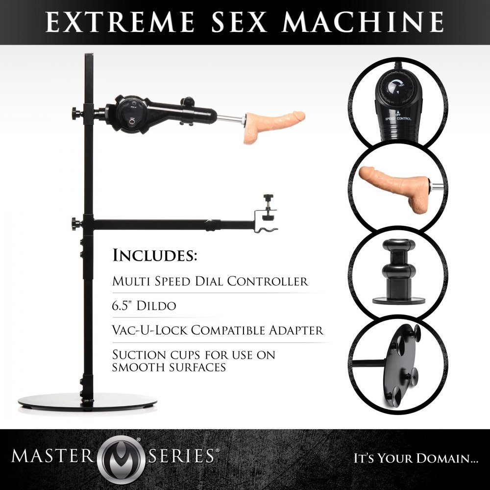 Adjust the angle of the machine up to enjoy unlimited positions. The machine moves up and down the length of the stand for your ideal height and can be angled to hit just the right spot to please you, no matter what position you're in! Use the multi-speed dial to play with various thrusting speeds of up to 195 RPM! The large, round, heavy-duty base has suction-cups to keep it in place and increase stability at all thrusting speeds. This machine was designed to mount to the Obedience Extreme Sex Bench (AF514) for non-stop self-pleasure or for screwing your partner while you enjoy the show! The mounting arm adjusts in length and height to accommodate other sex furniture, including cages, swings, household chairs, benches and more.