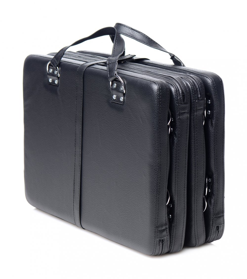 Bigger and better than before, the XL Bondage Board presents you with 21 extra inches and 18 D-ring attachment points to pair with your favorite restraints and turn your fantasy into reality! Turn any room into a dungeon with a unique piece of BDSM furniture that discreetly folds up and tucks away when not in use. The easy-carry handles make it convenient to take over to your partners house or on a kinky vacation. A total of 4 folding sections create greater versatility of positions, allowing you to put your plaything in doggy-style or keep their front helplessly exposed. The XL Bondage Board is comfortably cushioned for hours of pleasure play.
